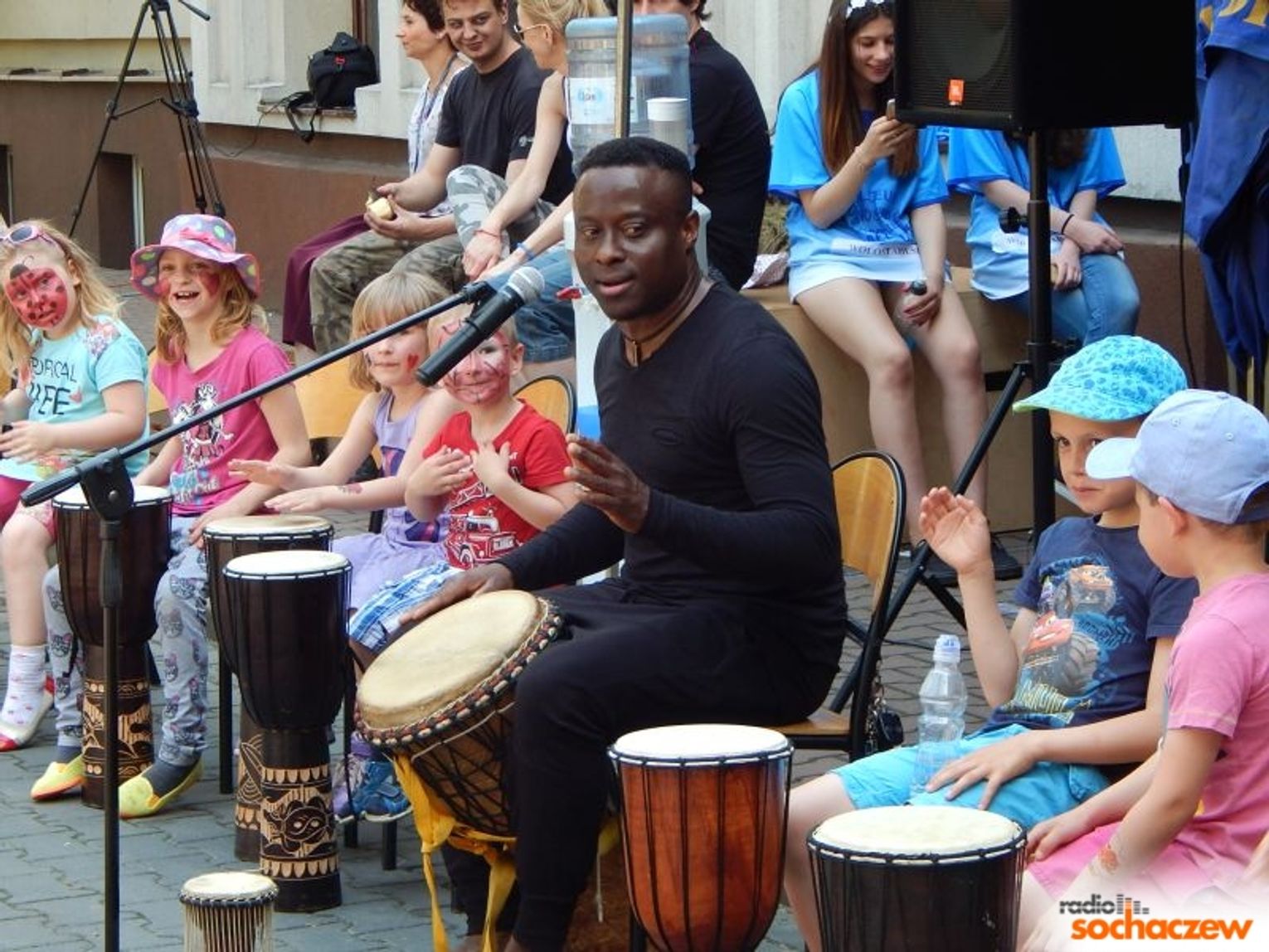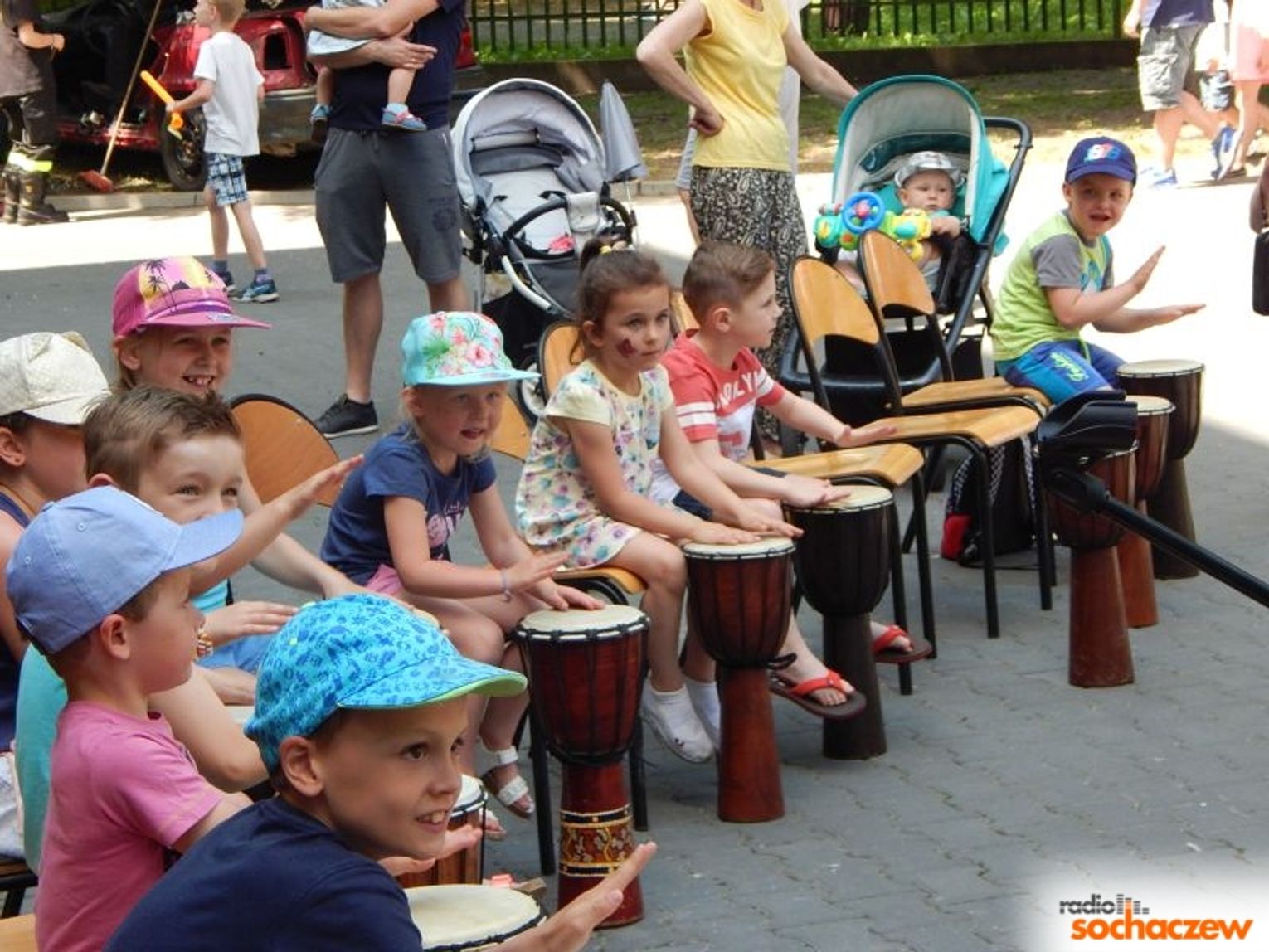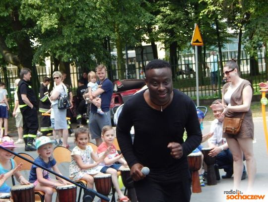A to wszystko za sprawą festynu rodzinnego pod hasłem Błoński Uśmiech Młodzieży. Kto przyszedł dziś do Broniewskiego, ten nie miał szans się nudzić bo atrakcji było co nie miara. Można było zagrać w twistera, poskakać na trampolinie, postrzelać z karabinków pneumatycznych, porysować kredą, ścigać się sterowanymi radiem modelami samochodów, połowić rybki i kaczuszki. Kto chiał mógł wziąć udział w grze miejskiej albo w konkursie wiedzy o Afryce. Było też malowanie buziek a młodzież z Ochotniczej Straży Pożarnej dała pokaz ratownictwa drogowego. Hitem tego popołudnia były warsztaty gry na djembe.