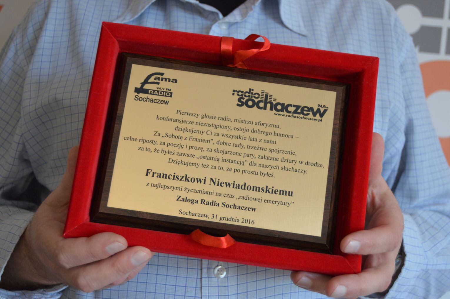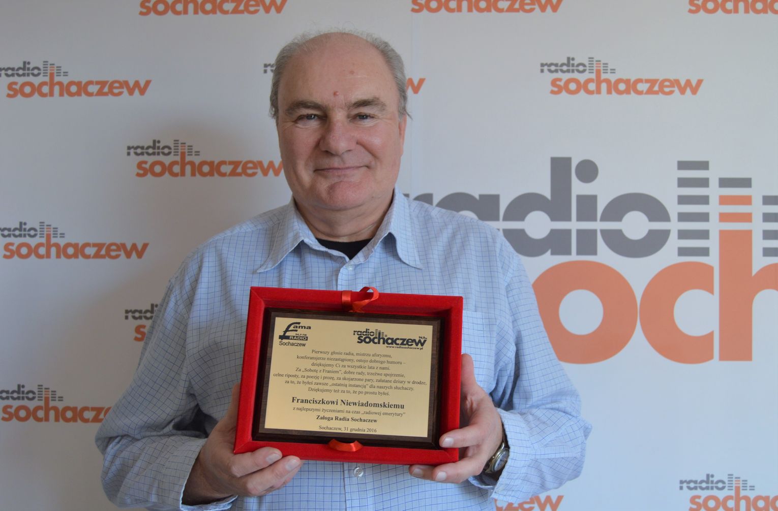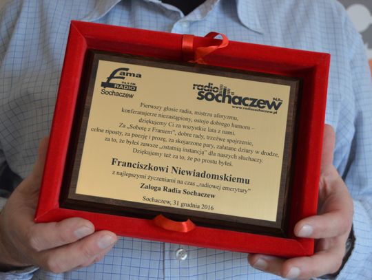 Koniec roku to koniec pewnej epoki w Radiu Sochaczew. 31 grudnia po raz ostatni Franciszek Niewiadomski poprowadził sobotni program „Sobota z Franiem”. Po 24 latach postanowił udać się na radiową emeryturę. Były podziękowania, kwiaty i słowa wzruszenia. Niektórym zakręciła się łezka w oku. 24 lata to szmat czasu, wiele niezapomnianych chwil, dużo śmiechu i pięknych wspomnień. Ale czas idzie do przodu. Sobotni program pozostanie w Radiu Sochaczew pod inną nazwą, z innym prowadzącym, ale na pewno z tą samą dawką dobrej energii. Dziękujemy naszemu kochanemu Frankowi za te wszystkie sobotnie poranki, kiedy to poprawiał nastrój słuchaczy swoim nietuzinkowym poczuciem humoru.