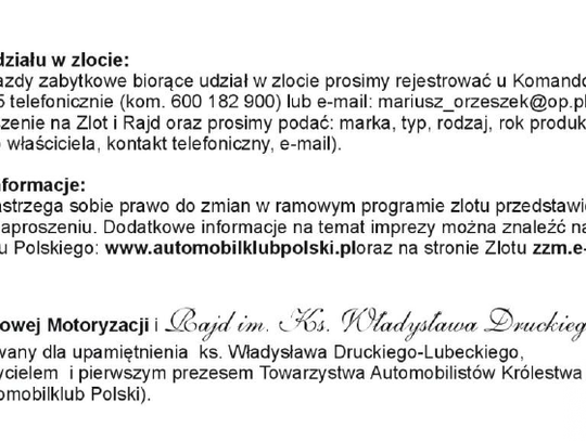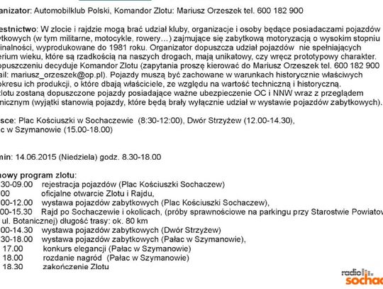 Szczegółowy program oraz informacje dotyczące zapisów: Radio_Sochaczew_Zlot_Zabytkowej_Motoryzacji Informacja pochodzi z: Polski Związek Motorowy